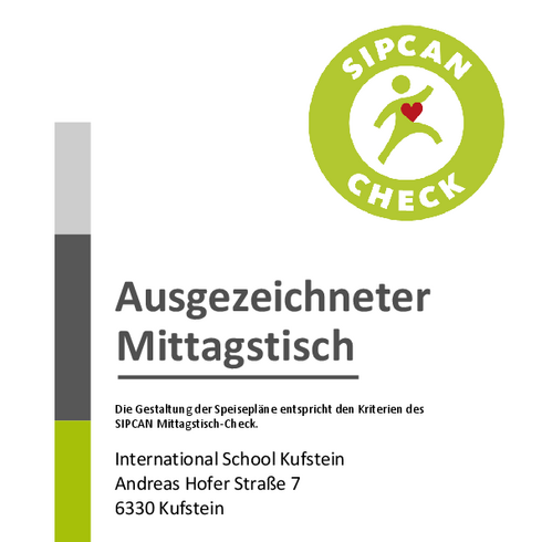 A healthy and balanced lunchtime is particularly important to us! For this reason, we - the International School Kufstein Tirol - take part in the ‘SIPCAN lunch check’.